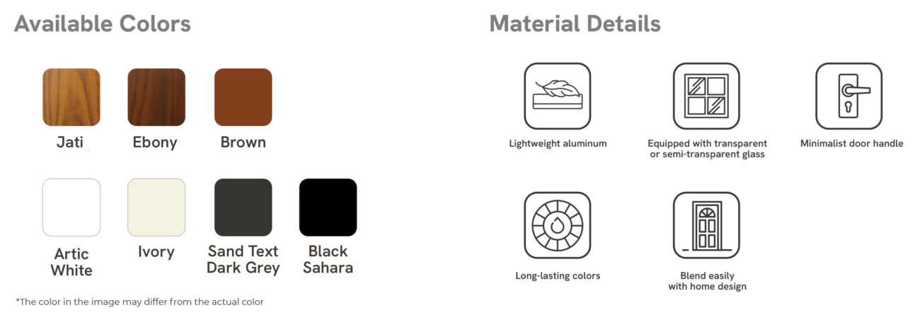 Invite positivity and a welcoming ambience into your space through the sleek and minimalist aluminium beauty of sapphire swing door, marking the start and close of each day.